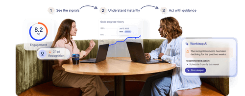 Workleap connects to your existing tools to surface signals and guide managers to act faster on team engagement, individual performance, and compensation.