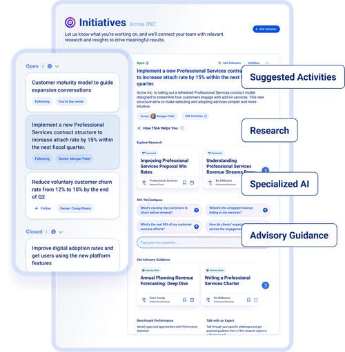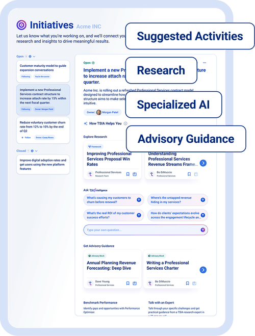 Get instant access to TSIA Intelligence—specialized AI built for tech services—with your free TSIA Portal account. Unlock expert research, tailored insights, and data-driven strategies to move your business forward.