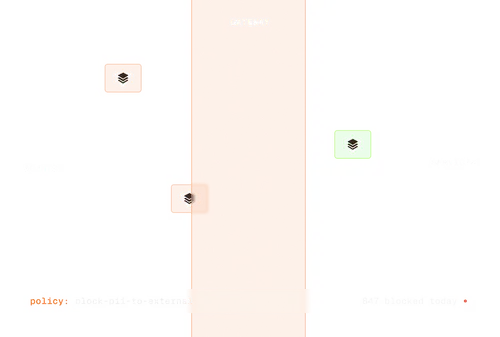 Granular policies per tool, team, and data source. Block PII exposure, credential leaks, and unauthorized access in real-time. Sub-ms latency.