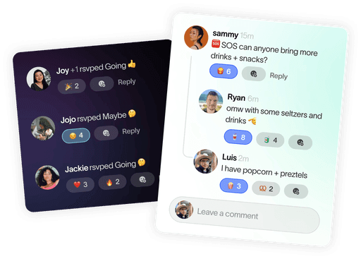 Stalk the guest list, leave comments, reply to friends, and add reactions.